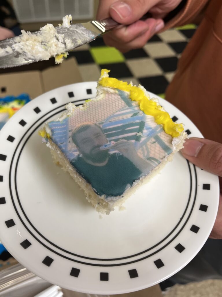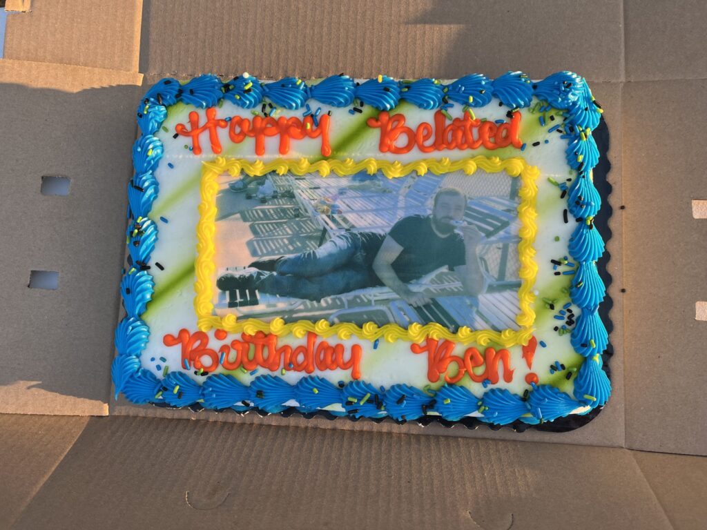Ben’s cake featured a picture of Ben wearing his favorite swimmin’ jeans.