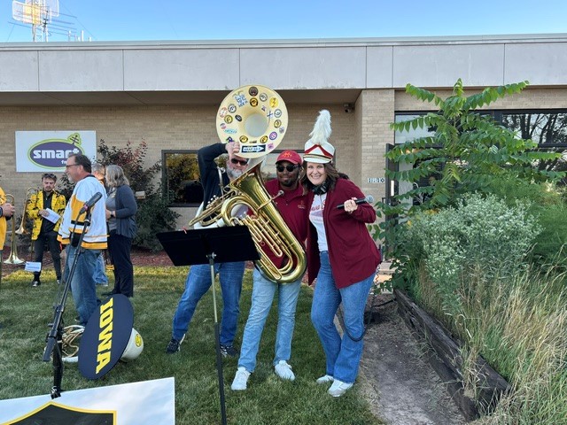 Clare broke out the black and gold for the Iowa/Iowa state game, but it didn’t help the Hawks. We had a blast at The Giving Crew’ watch party anyway!