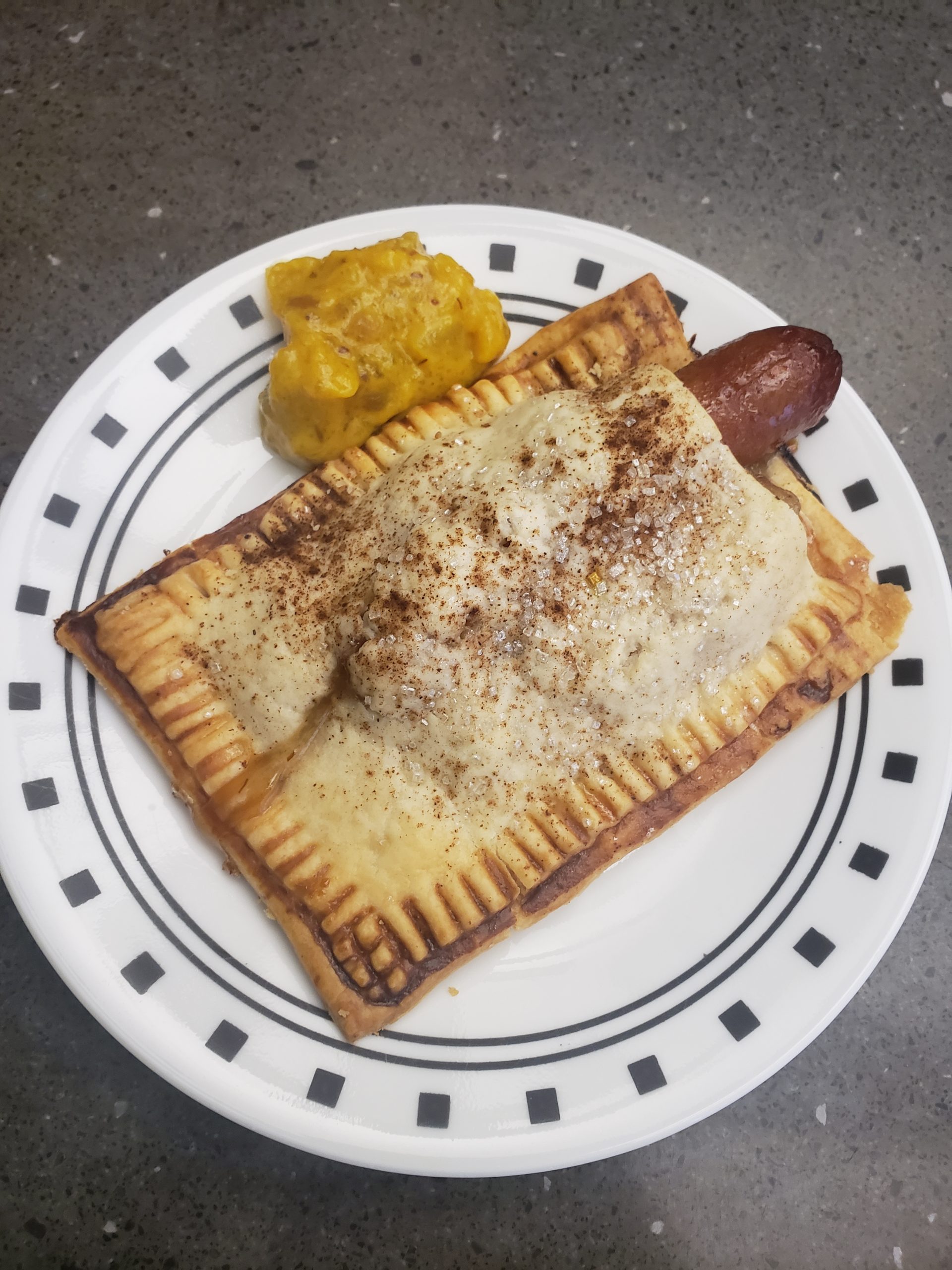 It looks like a cross between a poptart and a pig in a blanket. It’s served with a side of apple mustard with maple bacon crumble. It’s not terrible. It’s not great. It’s not necessary.