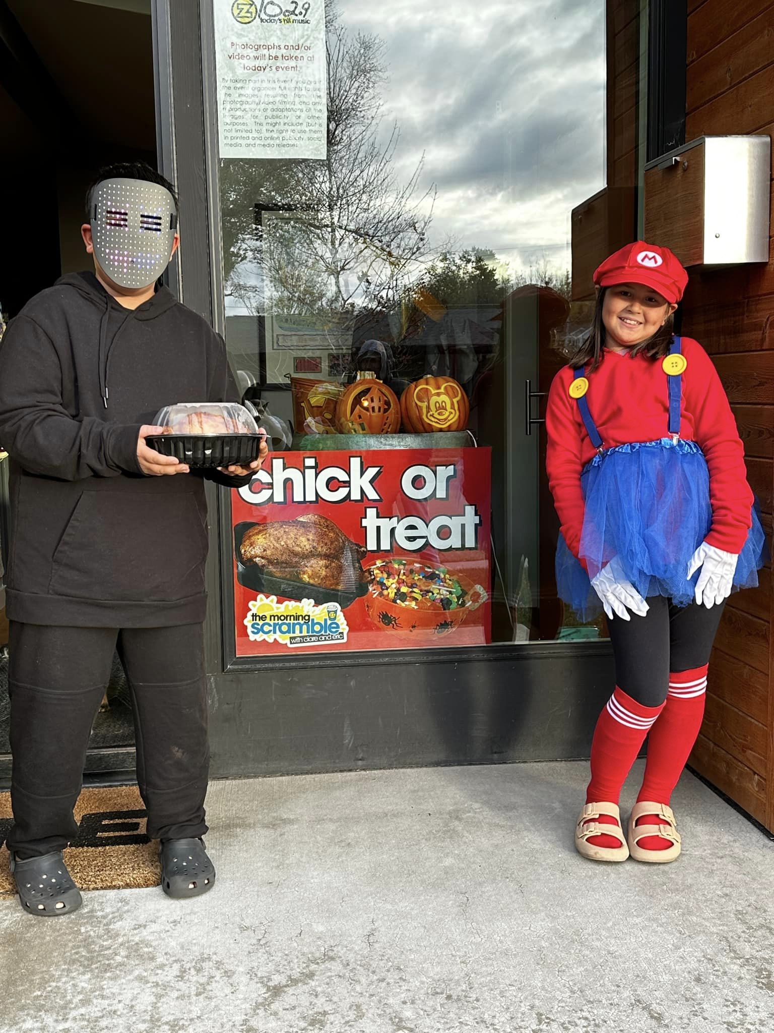 Right at 5 pm, the first trick-or-treaters knew exactly what they were after: CHICKEN!
