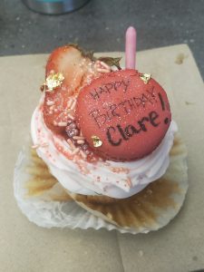 CLARE’S BIRTHDAY May 25, 2021 by Clare Duffy BIG thanks to ICED Bakery in Marion for whipping up some surprise cupcakes for Clare! Eric shocked Clare with this huge arrangement of flowers…he bought it from the Freedom Festival Tribute to Heroes Dinner. It’s roughly the size of a toddler!!