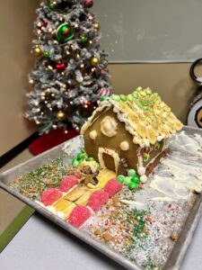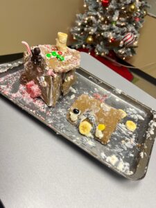 Jaidyn and The Mad Hatter did their best. They say they were sabotaged. Their gingerbread house was structurally compromised and became this gingerbread church featuring a bana-nativity with a slice of banana as the baby Jesus?