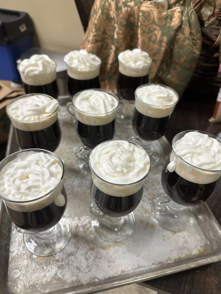 Shout out to Tammy for her excellent Irish Coffee recipe: brown sugar, whiskey, whipped cream, and oh yeah…coffee!
