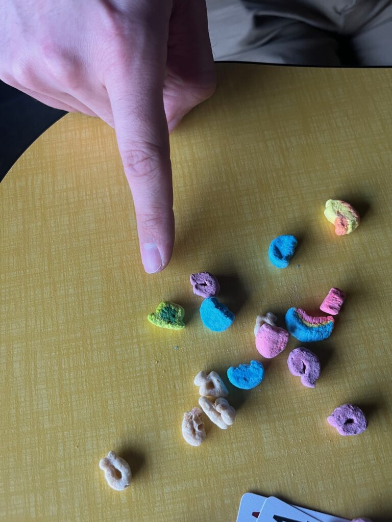 Ben doesn’t really have a good luck charm, so Eric gifted him a box of Lucky Charms.