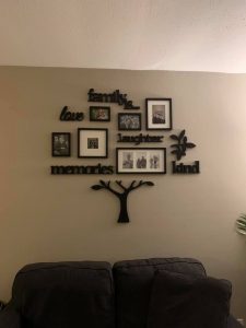 Destiny grabbed the mop and broom and got around to some LATE spring cleaning. She also finally put up these picture frames she got as a Christmas gift.