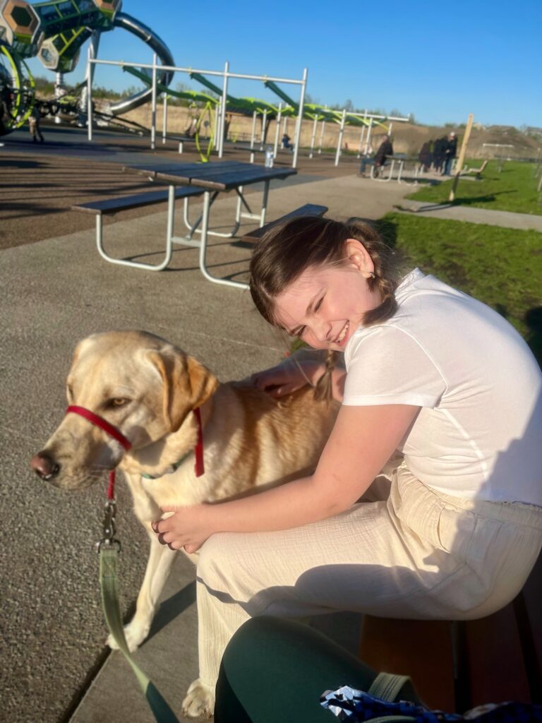 Clare worked in lots of walks to the park and shopping for Cora. They accidentally got an outfit that looks like Rex!