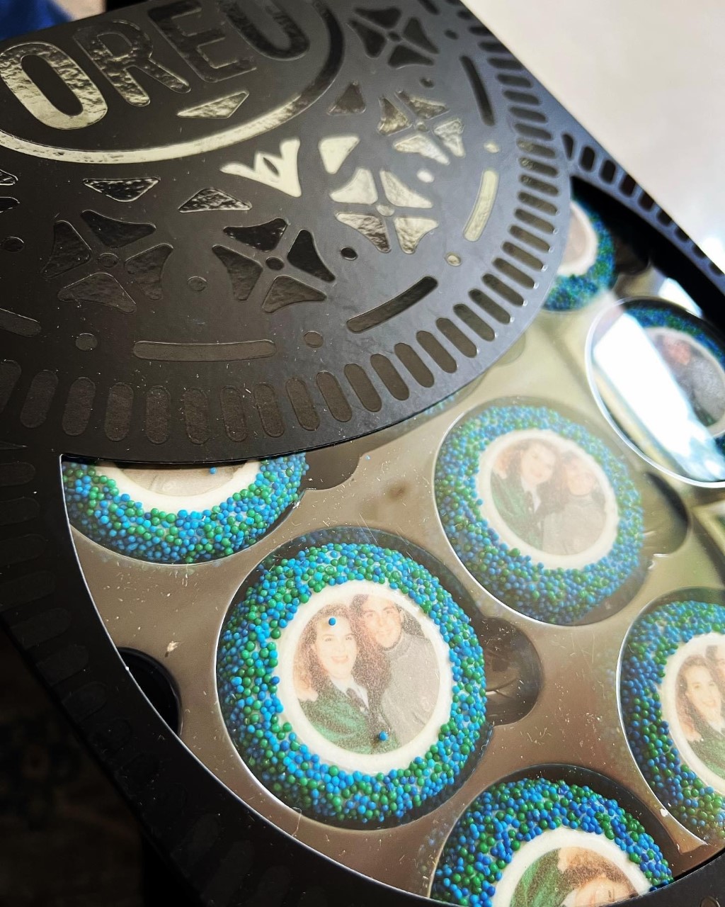 Ordered more than a week before their anniversary, Oreo finally delivered Eric and Shannon their customized cookies, complete with a picture from their college dating days!