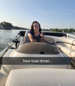 Clare is learning how to drive a boat…it’s a process…and there’s still more summer to learn!