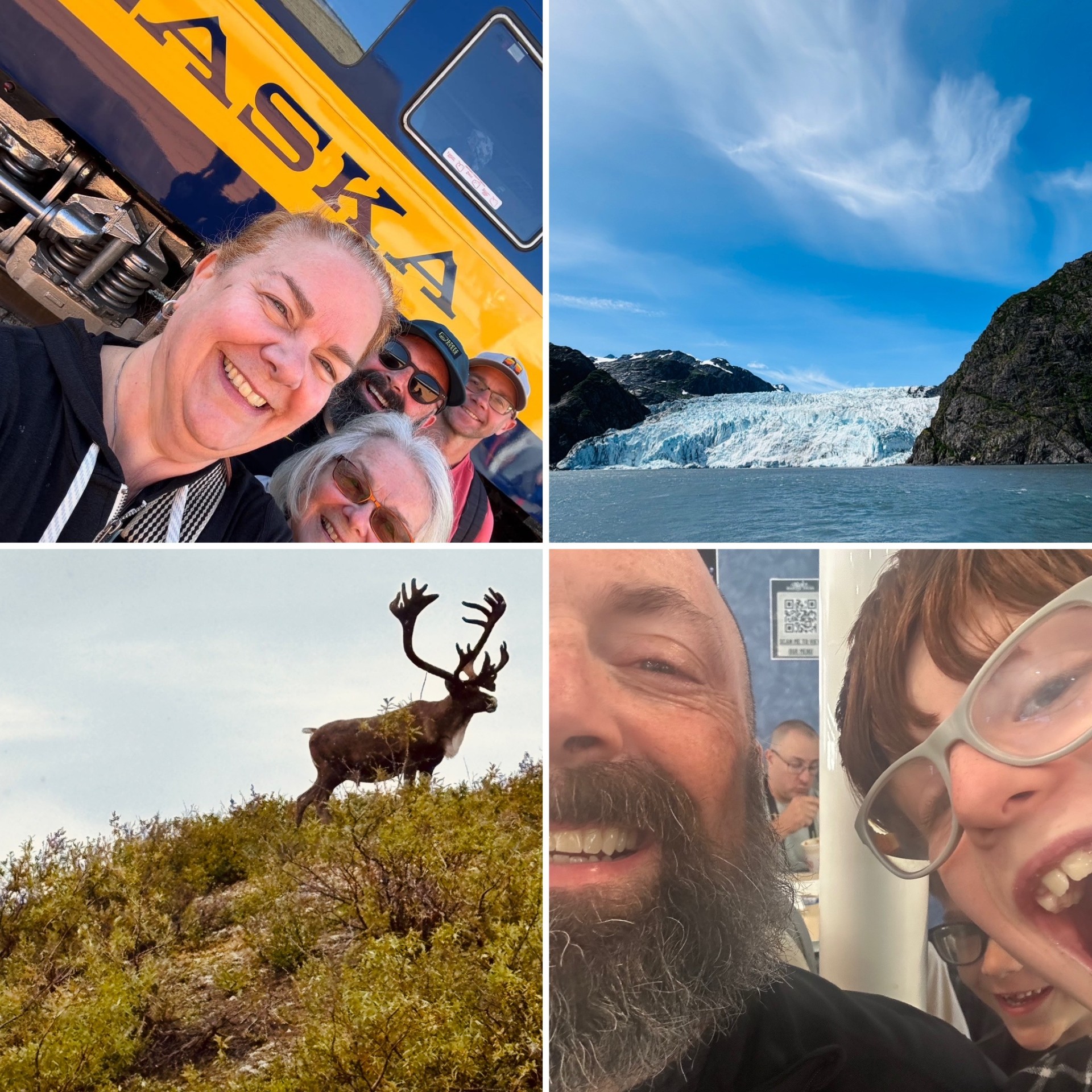 One week, five states, so many adventures for Dancin’ Eric Hanson… how do you pick just one?!? So… clockwise L to R: 50 states for the fam, look a glacier, look a caribou, and meet Milo.