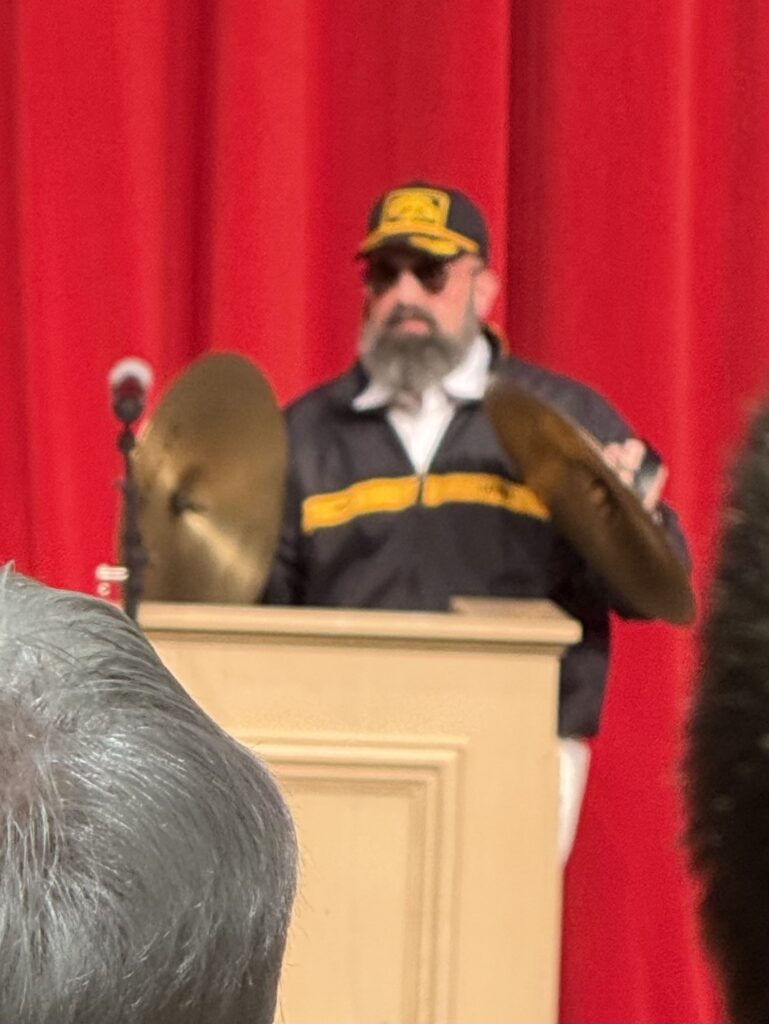 Though a tad out of focus, here’s a look as Dancin’ Eric Hanson ended a Celebration of Life service for a family friend with the Iowa Fight Song.