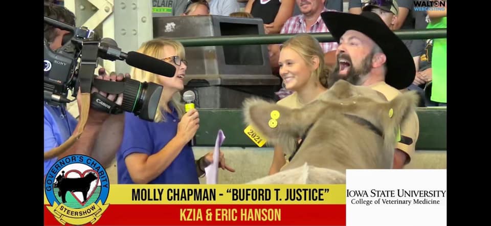 Eric had a huge weekend, so he gets two shots: he had a big win with the Chapman family from Tipton! Bueford T Justice won the People’s Choice Award at the Iowa State Fair!