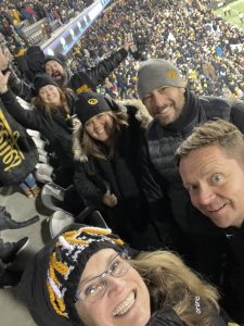 Celebrating a Hawkeye win with Eric, Shannon, their friends Justin and Angela (we call her Memphis) and the Tylers!