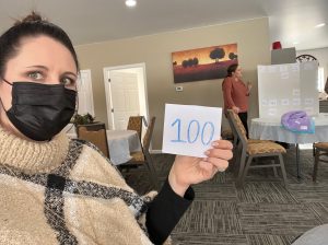 Clare tried—so hard—at a round of Baby Shower Jeopardy, but she only managed a measly 100 points.