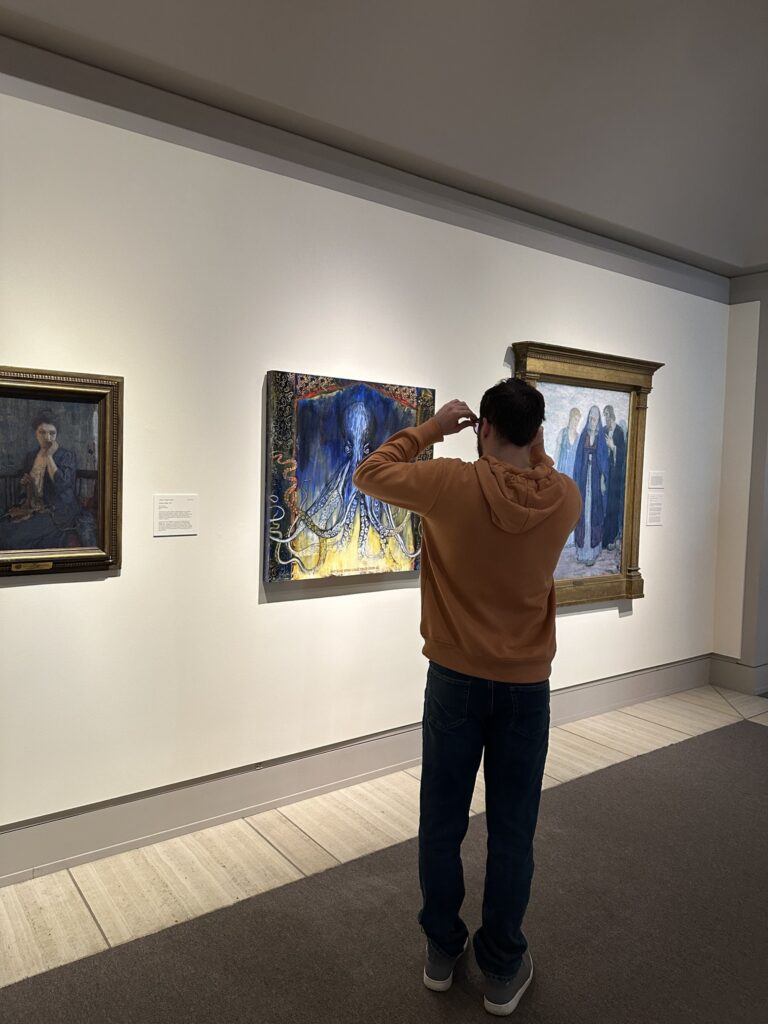 Ben liked this painting of an octopus without the glasses, but it was even more vibrant with the glasses.