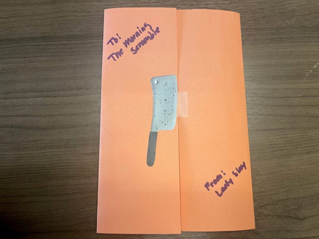 SCARY MOVIES WITH DJ LADY SLAY October 5, 2023 by Clare Duffy Who has a bloody meat cleaver sticker?! Which to choose? The Morning Scramble went with “Hubie Halloween.”