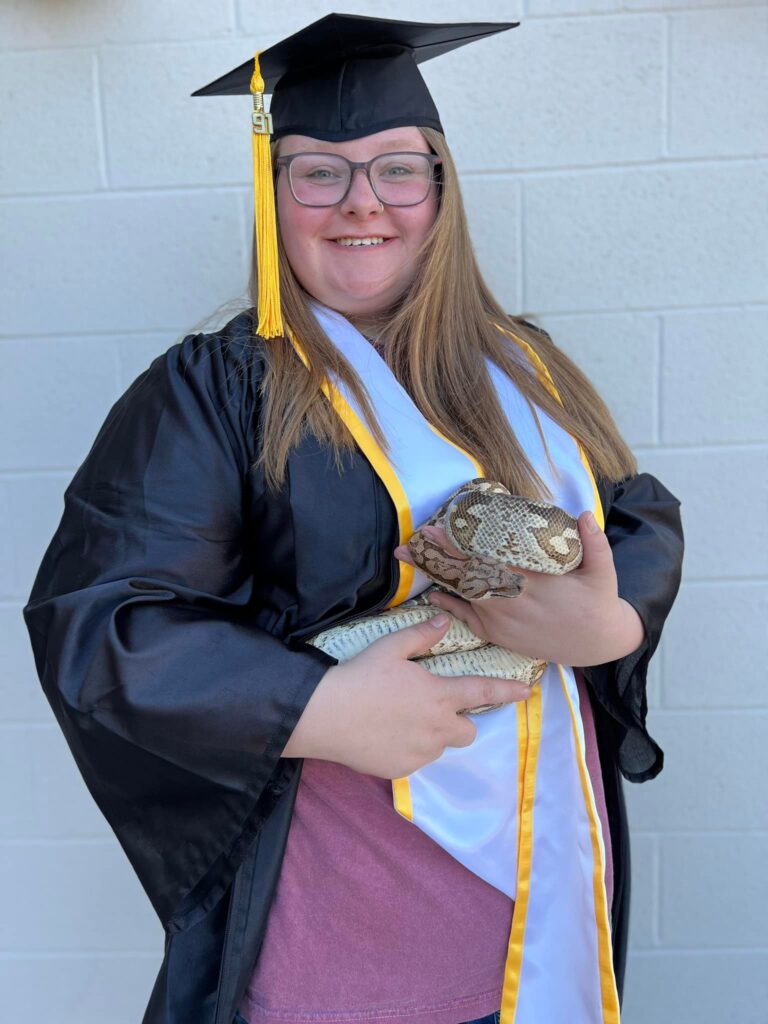 Jaidyn showed up with a snake around her neck!! Meet her boa constrictor, Executor aka “Cutie” for short. He loves to cuddle because he’s cold blooded. Favorite food: rats.😱