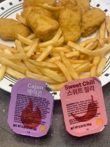 The BTS menu contains two new to us sauces from McDonald’s in South Korea: Sweet Chili and Cajun Sauce.