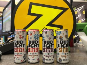 The main event: The Bud Light Seltzer Ugly Sweater pack featuring Cranberry, Cherry Cordial, Sugar Plum, and Seltzer Nog.