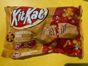 The food scientists at KitKat got to experimenting with flavors and landed on “Gingerbread Cookie.” We think they went a little overboard with the ginger flavor. They’re overly sweetened. Blech!