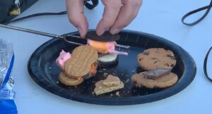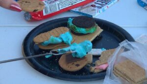 Jet-Puffed ‘Color Changers’ Marshmallows start pink and blue, but change to green and orange when you roast them.