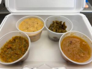The dish isn’t complete without a sauce. We sampled red salsa, green chili queso, salsa verde, and pork green chili sauce. By far, our favorite sauce was the green chili queso!