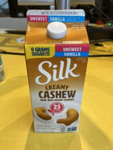Cashew milk has a brown undertone, which was slightly off-putting. The flavor was very mild, but thick.