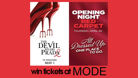 You’ll get the movie tickets, a concession coupon, and $50 to MODE! And one lucky winner will get an upgraded “Devil Wears Prada 2” cup, tin, and a popcorn purse!
