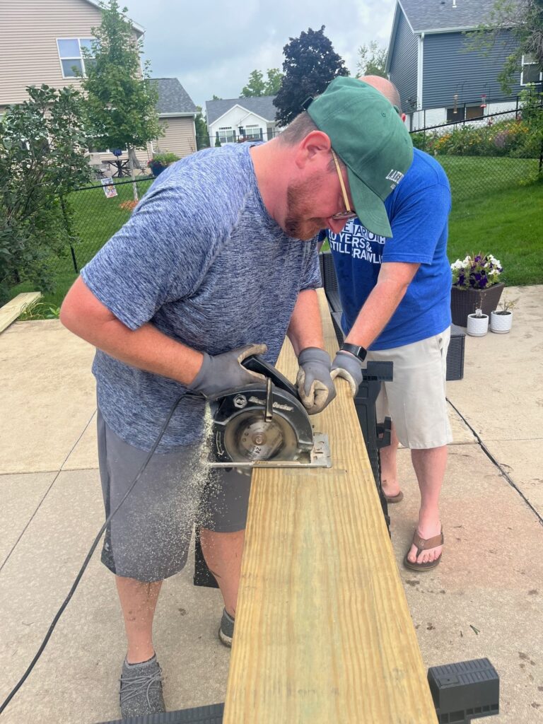 The Fix It Fellas cut lumber! Cool and dangerous.