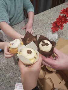 Clare had a bittersweet weekend–her best friend got married. There were no guests at the ceremony, so she sent cupcakes to toast in the happy couples’ honor.